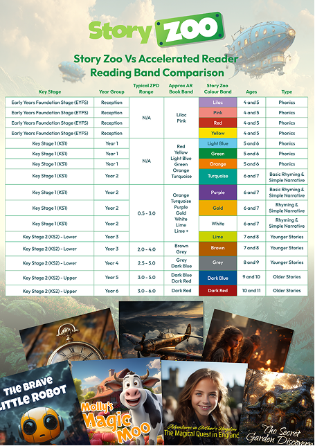 Story Zoo fits seamlessly into your existing system. Our colour-banded levels align with your current reading frameworks, so there’s no relabelling, no data migration headaches - just a smoother reading journey.